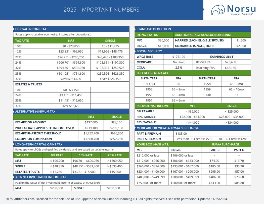 Important Fine Print: These tools and resources are provided for educational purposes and are not intended as specific financial, investment, or tax advice. Some of the calculations make general assumptions and may not reflect your unique financial situation. Please consult a licensed professional (like Norsu) for personalized advice.